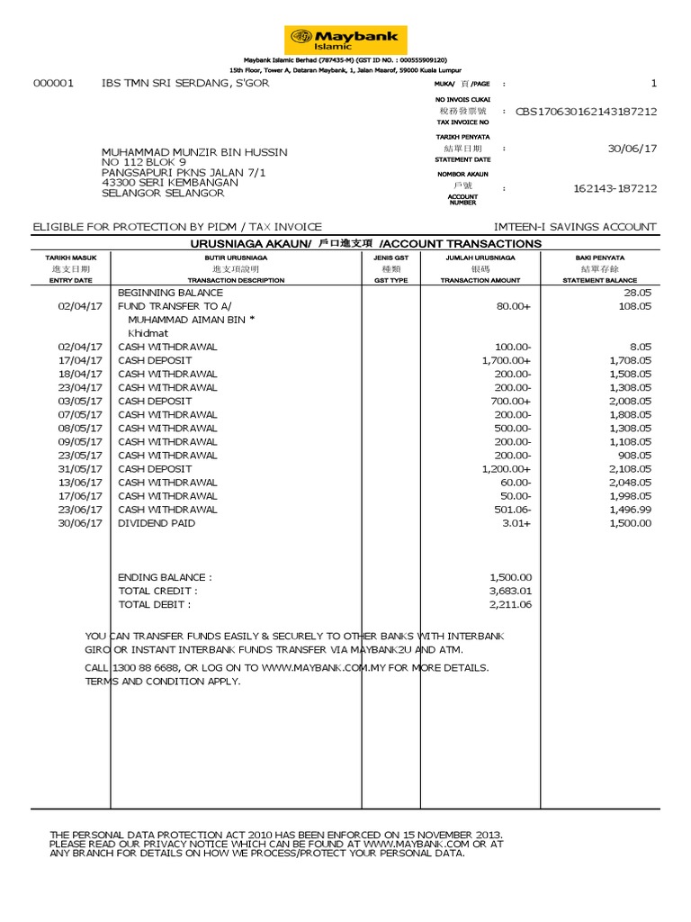 6 Penyata Maybank Islamic Pdf Maybank Islamic Berhad 787435 M Gst Id No 000555909120 14th Floor Menara Maybank 100 Jalan Tun Perak 50050 Kuala Course Hero
